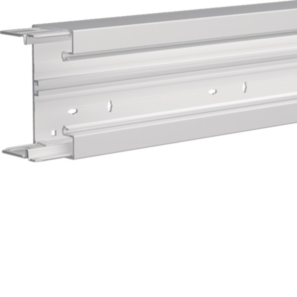 Entdecken Sie das Brüstungskanal-Unterteil BRH6513019016, frontrastend. Erhältlich in Verkehrsweiß ist er der perfekte Geräteeinbaukanal für alle Elektroprofis. Mit einer Größe von 68x130x2000 mm und einer Breite des Oberteils von 80 mm bietet er reichlich Platz zur sicheren und geordneten Verlegung von Kabeln. Dank der Bodenlochung ist eine direkte Wandmontage möglich, die zusätzliche Rechtecklochung erlaubt die werkzeuglose Befestigung des Kanals mittels Clips an Konsolen.