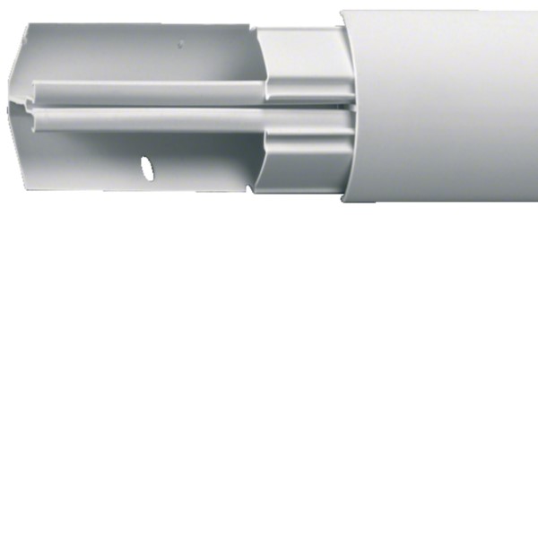 Der Eckkanal EK 40x40mm aus PVC in Verkehrsweiß, Länge 2,5 Meter, ist ideal für die diskrete Leitungsverlegung in Ecken von Raumdecken und entlang von Sockelleisten. Das System umfasst ein Kanalunterteil mit fester Trennwand und vorgestanzter Bodenlochung alle 125 mm. Anstellbare Kabelhalteklammern und ein gewölbtes Oberteil erleichtern die Installation und sorgen für eine sichere Kabelführung. Optimal für eine saubere Elektroinstallation.- Hersteller-Artikelnummer (MPN)