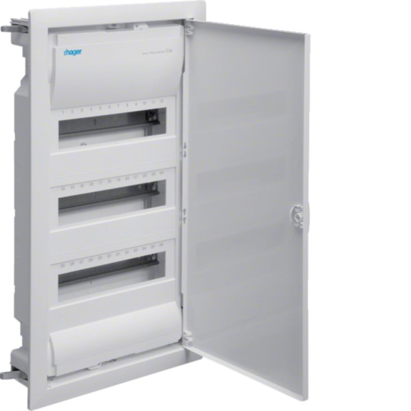 Entdecken Sie den VH36NC mit 3x12 PLE der ideale Kleinverteiler mit Stahlblechtür für die Montage in Innenräumen gemäß DIN18015. Der VH36NC lässt sich dank der 3 Tragschienen und des beiliegenden Befestigungsmaterials schnell montieren. Der VH36NC bietet Platz für bis zu 36 Baugruppen und ist mit einer Vielzahl von Zubehörteilen für eine einfache Installation und Wartung des Verteilers erhältlich.