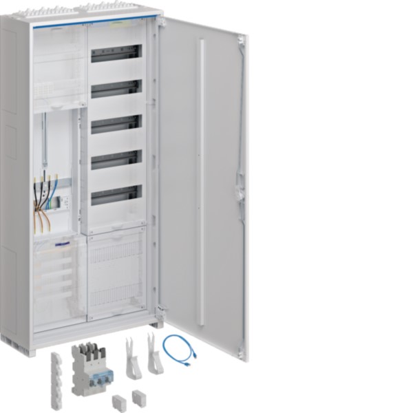 Der Zähler-Komplettschrank univers, ist ein 3-Punkt Zählerplatz, verfügt über einen Vorzählerplatz Typ 5 und einem Abschlusspunkt Zählerplatz (APZ). Ausgestattet mit einem SLS-Schalter 63 Ampere und einer Einbausatzanlage. Die Abmessungen betragen 1100x550x205mm und er erfüllt den IP Standard 44, was ihn staub- und spritzwassergeschützt macht. Ideal für die Aufputz-Montage in Gebäuden, bietet er eine robuste und sichere Lösung für die Unterbringung von Stromzählern.
