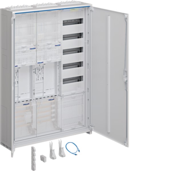 Der ZB33ET225W1 ist ein hochwertiger 3-Feld-Komplettschrank mit Schutzart IP 544 und SK II, der mit 2 Zählerplätzen, BKE-I, einem Verteilerfeld mit 5 Reihen/APZ-Raum und ESA ausgestattet ist. Mit Abmessungen von 1100x800x205 mm bietet er genügend Platz für großflächige Elektroinstallationen. Sein benutzerfreundliches Design macht die Montage zum Kinderspiel und bietet Elektrikern eine effiziente und qualitativ hochwertige Lösung. Vertrauen Sie bei Ihren Installationslösungen auf Hager!