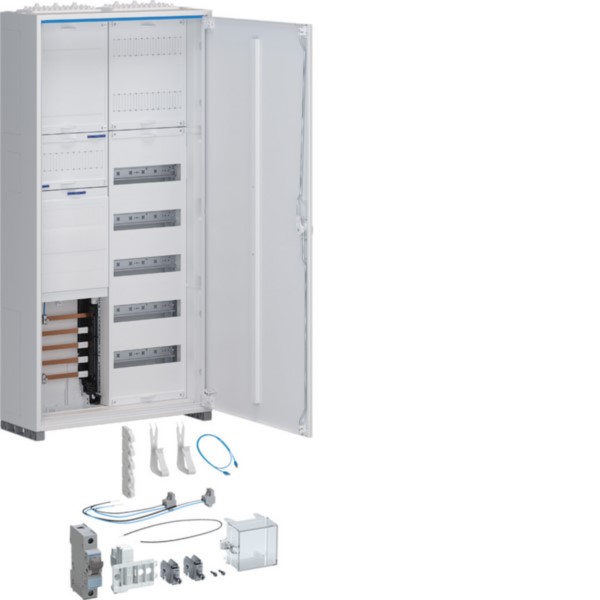Der Zähler-Komplettschrank univers Z 1ZP BKE-I OKK APZ VT5 mit einer Höhe von 1100mm und 2-feldiger Ausführung bietet eine integrierte APZ für effiziente Verkabelung. Geeignet für Aufputz-Montage, ist dieser Stromzählerschrank mit einer 5polige Hauptleitungsabzweigklemme ausgestattet und unterstützt die einfache Integration von Energieverteilungssystemen. Ideal für den Einsatz in Wohn- und Geschäftsbereichen, gewährleistet er eine sichere und normgerechte Installation elektrischer Zähler.