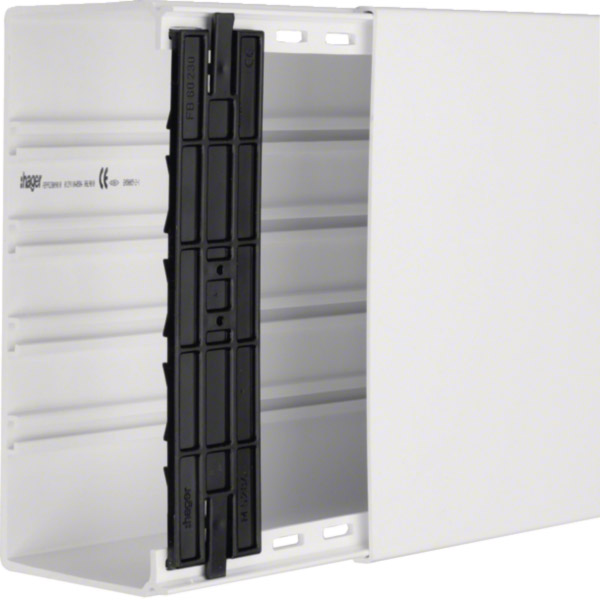 Leitungsführungskanal mit Trennwandeinbauoption PVC FB 100x230mm verkehrsweiß.Elektro-Installationskanal-System Leitungsführungskanal, aus Kunststoff nach DIN EN 50085-1 zur Leitungsverlegung mit Geräteeinbaumöglichkeit. Kanalunterteil/-oberteil mit vorgestanzter Bodenlochung im Abstand von 125 mm, Rückhalteklammern und Trennwandeinbaumöglichkeit. Hinweis: Schall- und Brandschutz-Maßnahmen sind fachgerecht auszuführen.