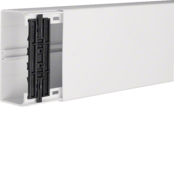 Leitungsführungskanal mit Geräte/Trennwandeinbauoption PVC FB 60x130mm vweiß.Elektro-Installationskanal-System Leitungsführungskanal, aus Kunststoff nach DIN EN 50085-1 zur Leitungsverlegung mit Geräteeinbaumöglichkeit. Kanalunterteil/-oberteil mit vorgestanzter Bodenlochung im Abstand von 125 mm, Rückhalteklammern und Trennwandeinbaumöglichkeit. Hinweis: Schall- und Brandschutz-Maßnahmen sind fachgerecht auszuführen.