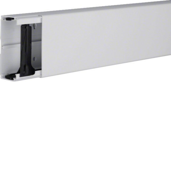 Leitungsführungskanal LF 40x90mm aus PVC in Lichtgrau, entspricht DIN EN 50085-1. Ausgestattet mit Trennwandmöglichkeit Kanalunterteil und -oberteil sowie vorgestanzter Bodenlochung im 125 mm Abstand. Einfache Montage durch vormontierte Kupplungen und Rückhalteklammern. Geeignet für strukturierte Kabelorganisation in Elektroinstallationen.