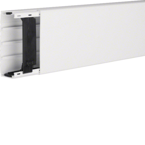 Leitungsführungskanal aus PVC LF 40x110mm verkehrsweiß.Elektro-Installationskanal-System Leitungsführungskanal aus Kunststoff nach DIN EN 50085-1 zur Leitungsverlegung. Kanalunterteil/-oberteil mit Trennwand-Einbaumöglichkeit, einrastbar, mit vorgestanzter Bodenlochung im Abstand von 125 mm, mit vormontierten Kupplungen zur einfachen Ausrichtung bei Ein-Mann-Montage und vormontierte anstellbaren Rückhalteklammern. Hinweis: Schall- und Brandschutz-Maßnahmen sind fachgerecht auszuführen.