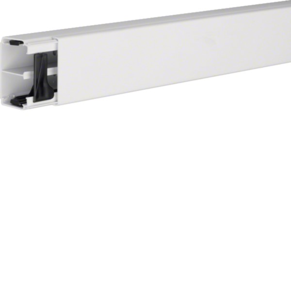 Leitungsführungskanal LF 40x60mm in Verkehrsweiß, aus PVC, entspricht DIN EN 50085-1. Ausgestattet mit fester Trennwand und vorgestanzter Bodenlochung im 125-mm-Abstand. Für einfache Montage mit vormontierten Kupplungen und Rückhalteklammern.