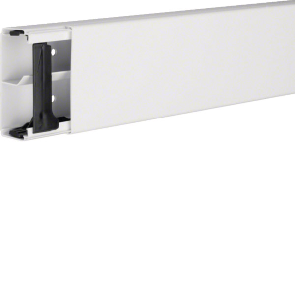 Leitungsführungskanal mit Trennwand PVC LF 40x90mm verkehrsweiß.Elektro-Installationskanal-System Leitungsführungskanal aus Kunststoff nach DIN EN 50085-1 zur Leitungsverlegung. Kanalunterteil/-oberteil mit fester Trennwand, mit vorgestanzter Bodenlochung im Abstand von 125 mm, ab Größe 40 x 60 mm mit vormontierten Kupplungen zur einfachen Ausrichtung bei Ein-Mann-Montage und vormontierte anstellbaren Rückhalteklammern. Hinweis: Schall- und Brandschutz-Maßnahmen sind fachgerecht auszuführen.