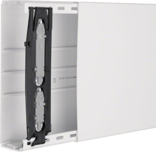 Leitungsführungskanal aus PVC LF 60x230mm verkehrsweiß.Elektro-Installationskanal-System Leitungsführungskanal aus Kunststoff nach DIN EN 50085-1 zur Leitungsverlegung. Kanalunterteil/-oberteil mit Trennwand-Einbaumöglichkeit, einrastbar, mit vorgestanzter Bodenlochung im Abstand von 125 mm, mit vormontierten Kupplungen zur einfachen Ausrichtung bei Ein-Mann-Montage und vormontierte anstellbaren Rückhalteklammern. Hinweis: Schall- und Brandschutz-Maßnahmen sind fachgerecht auszuführen.