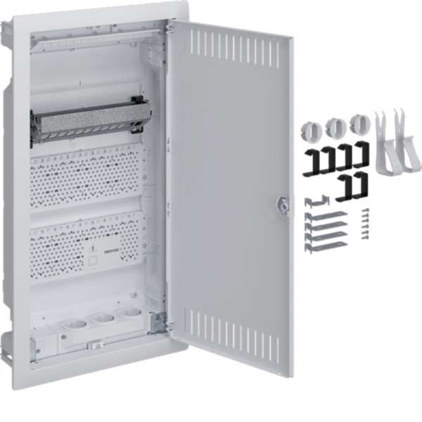 Erfahren Sie mehr über den 3-reihigen Multimedia-Unterputz-Kleinverteiler volta VU36NW von Hager, Schutzklasse IP30. Mit geschlitzter Stahlblechtür und DIN VDE 61439-3 Zertifizierung eignet er sich für den Einsatz in Wohngebäuden und den Einbau von schutzisolierten VDI-Komponenten. Mit Stahlblech-Geräteträger zur Aufnahme von einzeln isolierten Hutschienen. Der Kunststoff-Mauerkasten ist mit Leitungsabfang und ausbrechbarem Leitungseinführungsschieber ausgestattet. Das ist Hager!