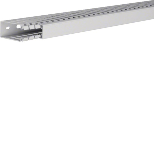 Der Verdrahtungskanal HA7 60x25mm in Lichtgrau ist halogenfrei und gewährleistet eine sichere Kabelführung. Das Unterteil ist mit Seitenstanzung versehen, was eine flexible Kabelführung ermöglicht. Die Bodenlochung entspricht der Norm DIN EN 50085, was die Kompatibilität mit gängigen Installationssystemen sicherstellt.