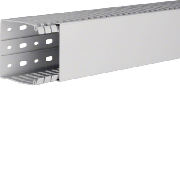 Der halogenfreie Verdrahtungskanal HA7 80x80mm in Lichtgrau bietet eine robuste Konstruktion. Das Unterteil ist seitlich gestanzt, und die Stege sind bis zum Boden ausbrechbar, was eine flexible Kabelführung ermöglicht. Inklusive Drahthalteklammer für sicheren Halt. Die Bodenlochung entspricht der Norm DIN EN 50085, was eine hohe Kompatibilität mit Installationsstandards gewährleistet. Ideal für eine ordentliche und sichere Verkabelung in verschiedenen Anwendungsbereichen.