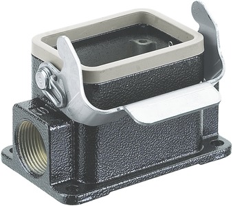 Sockelgehäuse, Baugröße: 6 B, niedrige Bauform, Längsbügel, Edelstahl, seitlicher Kabeleingang, 2x M20, Werkstoff Gehäuse: Aluminium-Druckguss, pulverbeschichtet, RAL 9005 (tiefschwarz), Werkstoff Dichtung: FPM
