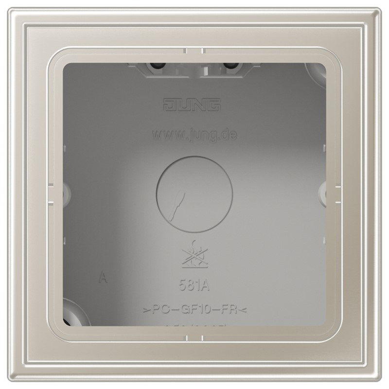 mit integrierter flammwidriger Bodenplatte und integriertem Rahmen für UP-Geräte mit Abdeckungen aus der Serie LS (außer Kippschalter LS 1912, Schlüsselschalter mit zylinderbündiger Abdeckung Art.-Nrn.: ..15, Stufenschalter und SEV-Steckdosen Typ 13) 81 x 81 x 47 mm Einbautiefe max. 34 mm