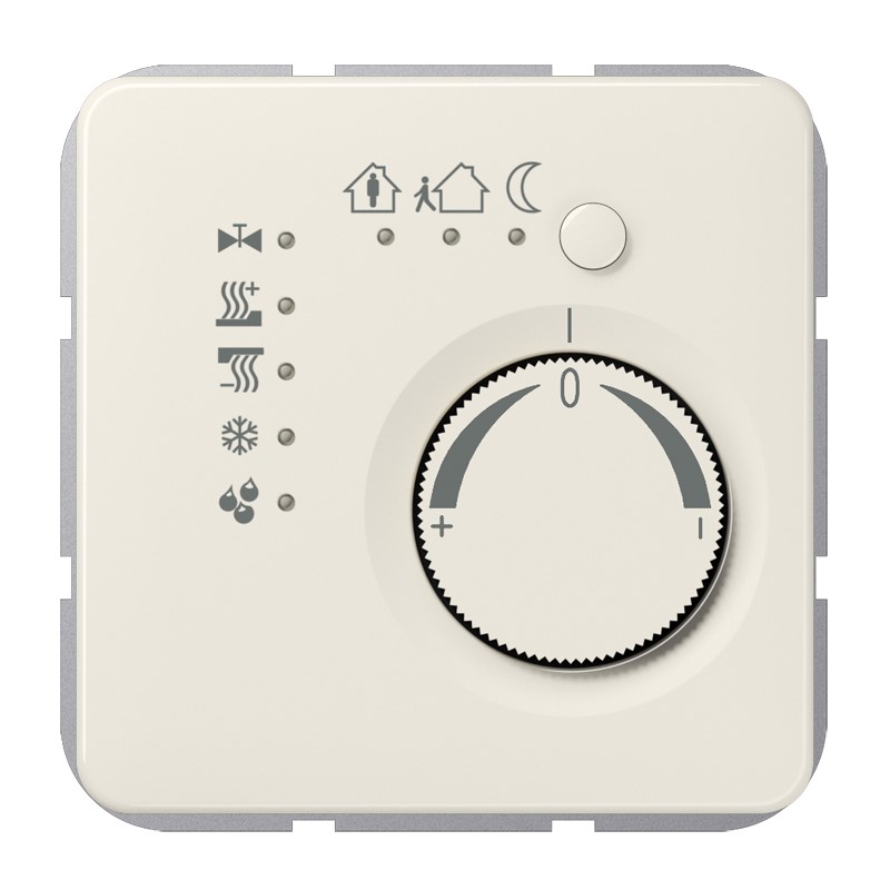 mit integrierter Tasterschnittstelle 4fach mit Stellrad zur Sollwertverstellung Die volle Funktionalität wird ab ETS3.0d oder höher unterstützt. ETS-Produktfamilie Phys. Sensoren Produkttyp Temperatur Bestimmungsgemäßer Gebrauch Einzelraum-Temperaturregelung in KNX-Installationen Lastarten Binärausgang: LED oder elektronische Relais Montage in Gerätedose mit Abmessungen nach DIN 49073 Produkteigenschaften Integrierter Busankoppler Messung der Raumtemperatur und Vergleich mit Soll-Temperatur Sollwert-Vorgabe durch Wahl der Betriebsart Betriebsarten Komfort, Standby, Nachtbetrieb, Frost-/Hitzeschutz Heiz- und Kühlbetrieb Heizen und Kühlen mit Grund- und Zusatzstufe Stellrad zur Sollwert-Korrektur Präsenz-Taste Status-LEDs Tasterschnittstelle mit vier Eingängen oder zwei Ausgängen und zwei Eingängen, z.B. für Fensterkontakte, Taster, LED etc. Funktion der Eingänge: Schalten, Dimmen, Jalousiesteuerung, Lichtszenen-Nebenstelle, Helligkeits- oder Temperatur-Wertgeber Optional: Externer Temperaturfühler anschließbar (Art.-Nr.: FF NTC) KNX Medium: TP 256 Nennspannung KNX: DC 21 ... 32 V SELV Stromaufnahme KNX: max. 10 mA Anschluss KNX: Anschlussklemme Umgebungstemperatur: -5 ... +45 °C Lager-/Transporttemperatur: -25 ... +70 °C