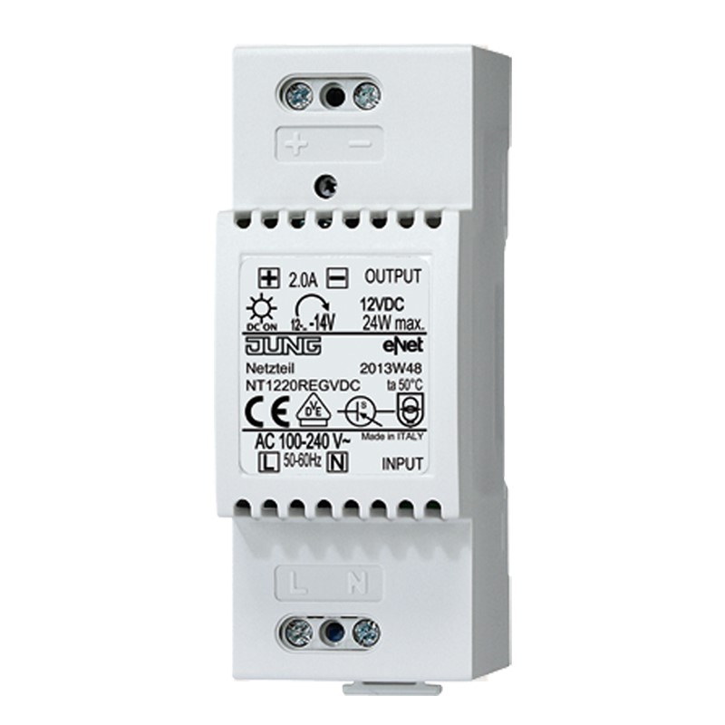 für eNet Funk-Empfangsmodul Art.-Nr.: FM FK 32 REG für eNet-Server Art.-Nr.: ENET-SERVER REG-Gehäuse 2 TE Eingangsspannung: AC 100 ... 240 V ~, 50/60 Hz Eingangsstrom: 505 mA Ausgangsspannung: DC 12 V Ausgangsstrom: 2 A Einbaubreite: 36 mm (2 TE) Anschluss Schraubklemmen