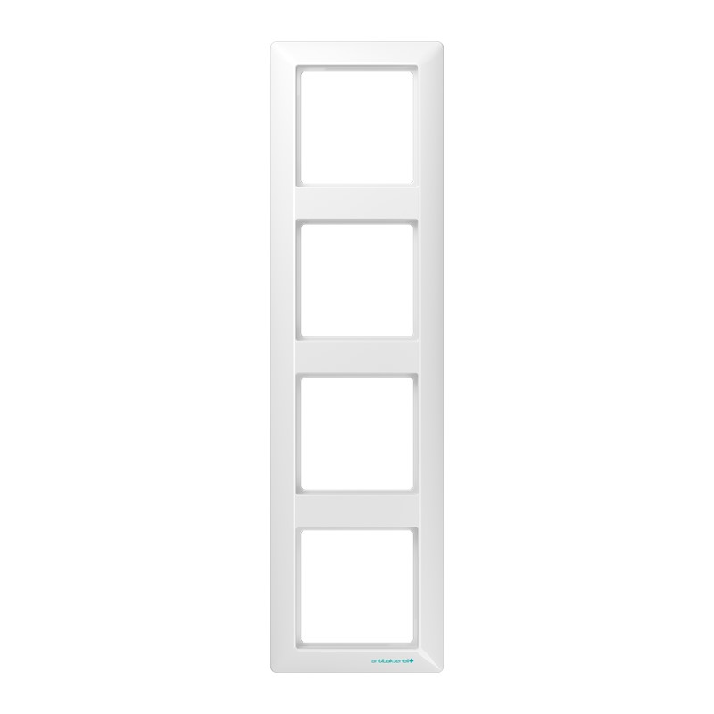 Rahmen 4fach, alpinweiß für waagerechte und senkrechte Kombination Mit Dichtungsflansch Art.-Nr.: 551 WU ist der Schutzgrad IP44 gewährleistet. Material: Duroplast antibakteriell Maße (B x H): 80,5 x 293,5 mm- Hersteller-Artikelnummer (MPN)