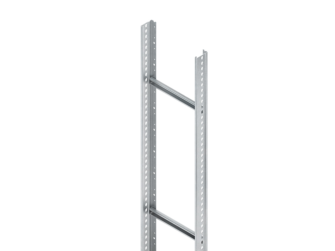 Steigetrasse nach DIN EN 61537, für die Wandmontage, mit durchgehend perforierten und profilierten Seitenholmen, mit eingenieteten Sprossen aus C-Profilen mit 16 mm Schlitzweite. Passende Bügelschellen (B... und BK...). Abmessungen (ca. Maße) H x B : 60 x 300 mm Materialstärke Holm : 1,5 mm Sprossenabstand : 600 mm Seitenholmlochung : 9 x 15 mm mittiger Abstand : 25 mm Bodenlochung : Ø 8,5 mm und Ø 5,4 mm mittiger Abstand : 100 mm und 50 mm Tragfähigkeit bei B/2 : 1,0 kN Lieferlänge L : 3000 mm Nutzbarer Querschnitt : 12850 mm² Werkstoff : Stahl, bandverzinkt nach DIN EN 10346