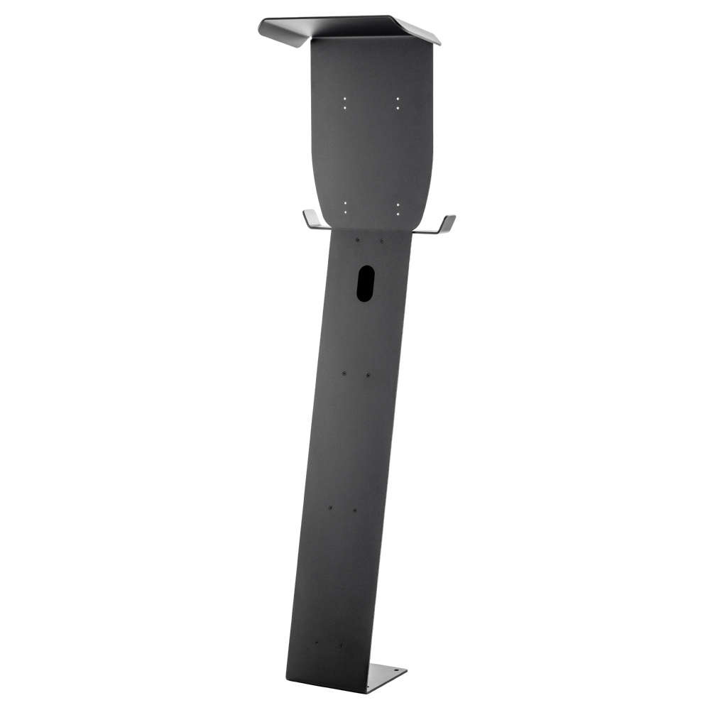 Standfuß als Stand-Alone Lösung für die PRACHT ALPHA Ladestation für den ungeschützten Außenbereich aus schwarzem, pulverbeschichteten Aluminium mit Kabeleinlass und vorgesehener Bodenverankerung zum festen Stand.