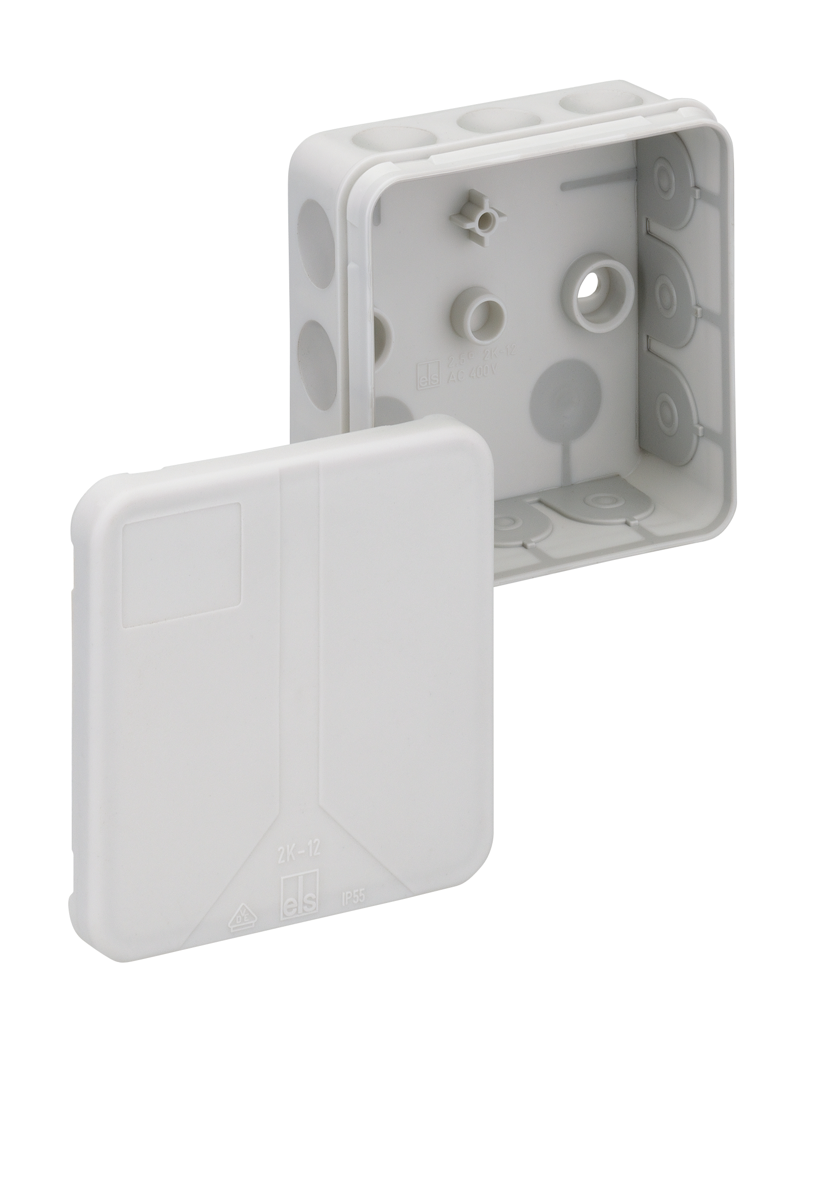 Abzweigdose, mit Schutzart IP55, Nennquerschnitt 2,5mm², Ui=400 V AC, zertifiziert durch VDE (DIN EN 60670-1/-22 (VDE 0606-1/-22)), selbstdichtende, weiche Einführungsmembranen, Dichtbereich 2-14mm, (2 rückseitig, 12 seitlich), innenliegende Befestigungsstellen, für Standardinstallationen im Innenbereich, grau, ohne KlemmenAbmessungen: 85 x 85 x 37mm