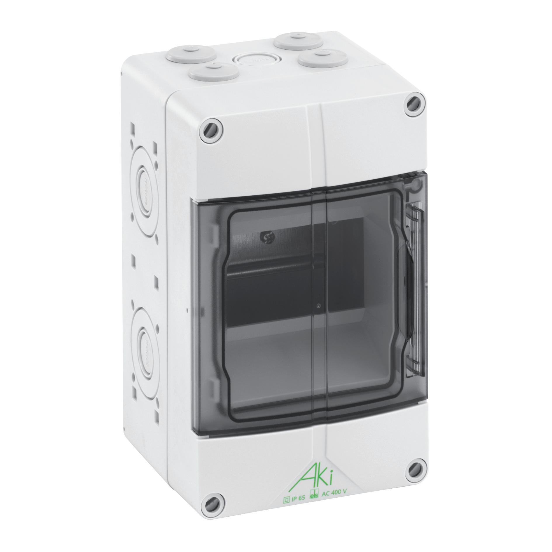 Kleinverteiler, mit Schutzart IP65, 1-reihig, 5 verfügbare Teilungseinheiten, Bemessungsbetriebsspannung: 400V AC, Bemessungsisolationsspannung: 1000V AC, 1000V DC, oben und unten metrische Vorprägungen für universelle Leitungseinführungen mit Kabelverschraubungen und / oder Doppelmembranstutzen, oben mit elastischen Einführungen DMS M20 vorbestückt, für die Installation im industriellen Umfeld und im geschützten Außenbereich, mit PE/N-Klemmschiene mit jeweils 2 Klemmstellen 16mm² und 3 Klemmstellen 6mm²Abmessungen: 125 x 200 x 122mmBeigefügtes Zubehör: Doppelmembranstutzen: 1x M25, Verschlussstopfen, Abdeck- und Beschriftungsstreifen