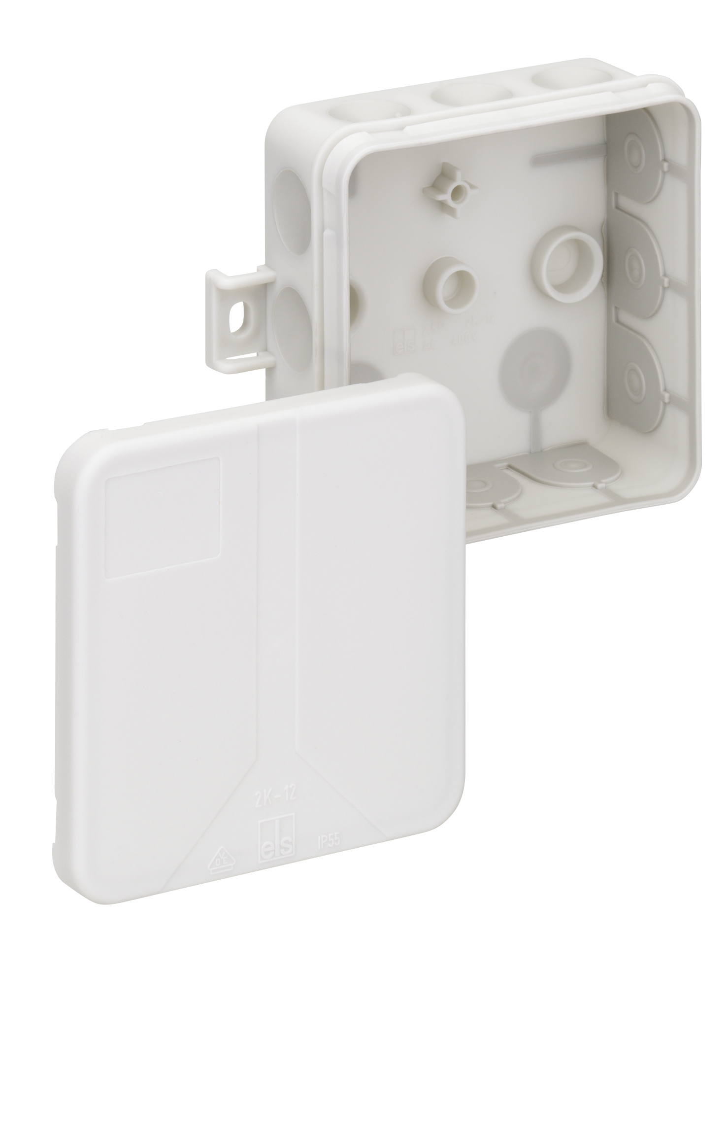 Abzweigdose, mit Schutzart IP55, Nennquerschnitt 2,5mm², Ui=400 V AC, zertifiziert durch VDE (DIN EN 60670-1/-22 (VDE 0606-1/-22)), selbstdichtende, weiche Einführungsmembranen, Dichtbereich 2-14mm, (2 rückseitig, 12 seitlich), außenliegende Befestigungsstellen, für Standardinstallationen im Innenbereich, grau, ohne KlemmenAbmessungen: 85 x 85 x 37mm