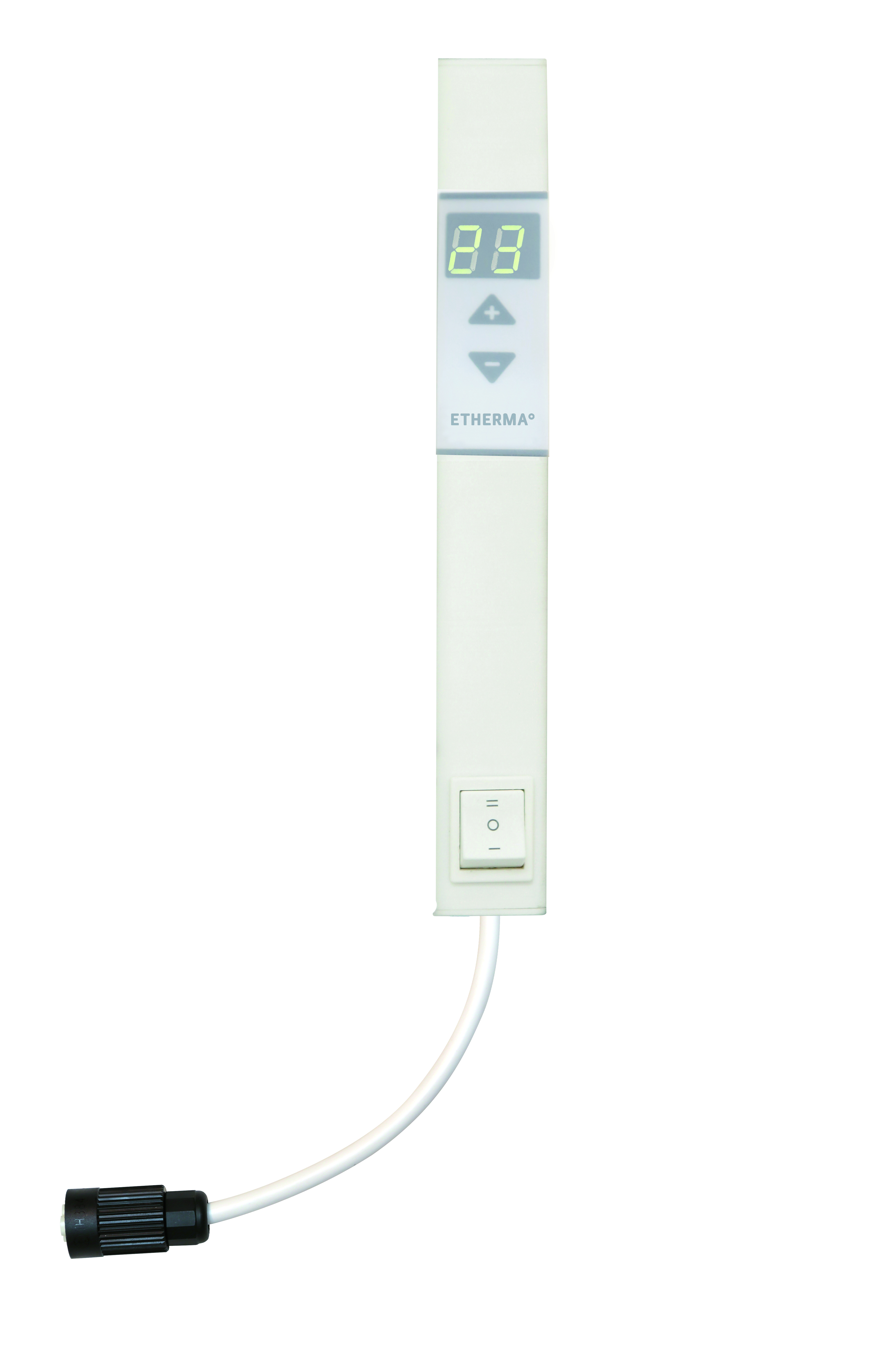 Das Thermostat LAVA-R kann im Plug & Play-Stecksystem an den LAVA 2.0 einfach montiert werden. Die Oberflächentemperatur lässt sich begrenzen. Stufe 1: ca. 60 °C, Stufe 2: ca. 95 °C. Zusätzlich kann man die Raumtemperatur von 0-35 °C einstellen.