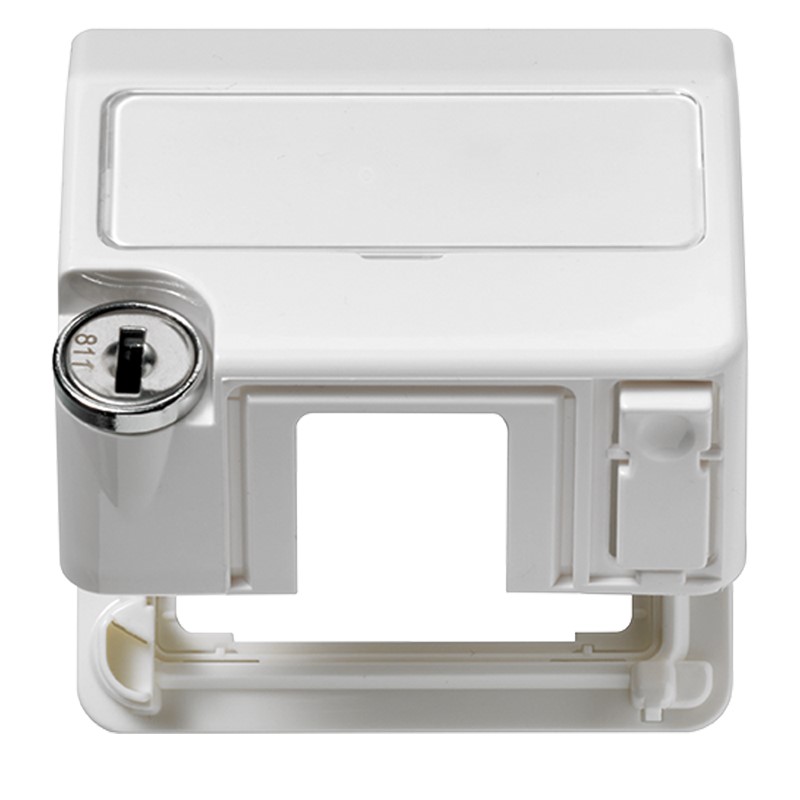 mit Schriftfeld 23 x 59 mm mit Sicherheitsschloss (24 verschiedene Schließungen) mit 2 Schlüsseln für Steckdosen und Geräte mit Abdeckung 50 x 50 mm Material: Thermoplast Maße (B x H): 67 x 67 mm