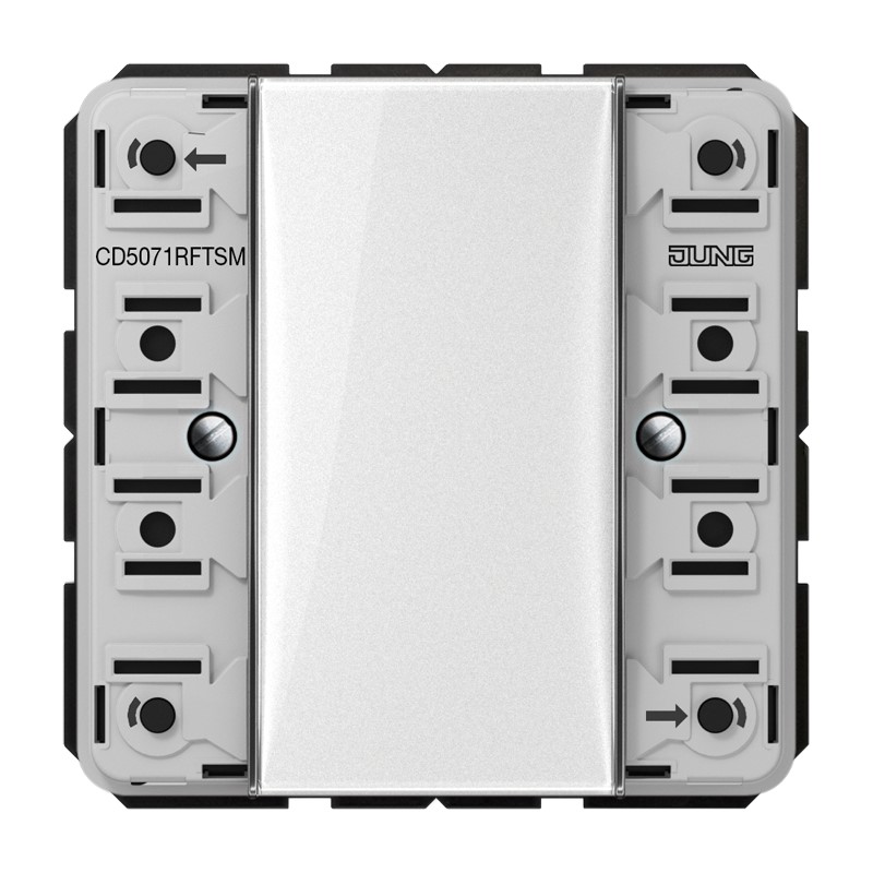 inklusive Montageplatte, Klebefolie und Befestigungsschrauben inklusive transparenter Abdeckung Art.-Nr.: CD 50 NA für Tastensatz 1fach, Art.-Nr.: CD 501 TSA .. ETS-Produktfamilie Taster Produkttyp Taster 1fach 1 grüne LED: Aktorstatus 1 rote LED: Übertragungsstatus Bestimmungsgemäßer Gebrauch Funkgebundenes Bedienen von Verbrauchern, z.B. Licht ein/aus, Dimmen, Jalousien auf/ab, Helligkeitswerte, Abrufen und Abspeichern von Lichtszenen Betrieb in leitungsgebundenen KNX-Anlagen über Medienkoppler (Art.-Nr.: MK 100 RF) Montage auf Gerätedose mit Abmessungen nach DIN 49073, Schraubbefestigung auf Wänden oder Klebemontage auf glatten Flächen (Glasscheiben) Produkteigenschaften Tastsensor-Funktionen Schalten, Dimmen, Jalousiesteuerung, Wertgeber, Szenenaufruf etc. Tastenpaare für Tast- oder Wippenfunktion Statusanzeige mit LED Integrierter Temperaturfühler Batteriebetriebenes Gerät (Batteriefach von vorne zugänglich) Projektierung und Inbetriebnahme mit ETS5 oder neuer- Hersteller-Artikelnummer (MPN)