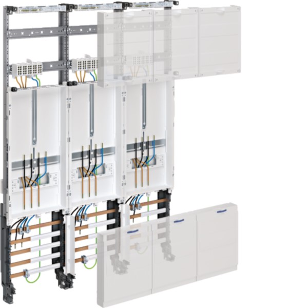 Das Komplettfeld univers Z mit einer Höhe von 1050mm bietet Platz für 3 Zählerplätze und ist in einer 3-Feld-Ausführung konzipiert, speziell für den Einsatz in Mitteldeutschland geeignet. Es erfüllt die regionalen Anforderungen und Normen für die Energieverteilung. Die robuste Bauweise und die einfache Montage ermöglichen eine effiziente Installation und Wartung. Ideal für den Einsatz in der Infrastruktur von Mehrfamilienhäusern oder Gewerbegebieten.