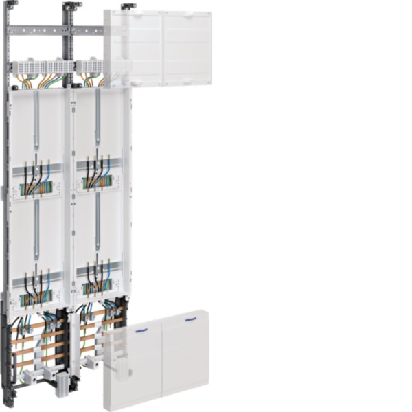 Das Komplettfeld univers Z mit einer Höhe von 1350mm, ausgelegt für 4 Zählerplätze in einer 2-Feld-Ausführung, entspricht den spezifischen Anforderungen Bayerns. Es bietet eine robuste Konstruktion für die Unterputz-Montage. Ideal für den Einsatz in Mehrfamilienhäusern oder gewerblichen Gebäuden, unterstützt es eine effiziente Energieverteilung und -messung.