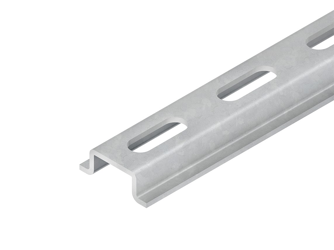 Tragschiene Modell 2937, Hutschiene 15 mm, Tragschiene TS 15 nach DIN EN 60715, gelocht. Verwendung für : Reihenklemmen Abmessungen (ca. Maße) Höhe H x Breite B x Materialstärke t : 5,5 x 15 x 1 mm Breite B1 der Befestigungsebene : 10,5 mm Profillochung : 4,2 x 12 mm mittiger Abstand : 20 mm Lieferlänge L : 2000 mm Werkstoff : Stahl, galvanisch verzinkt nach DIN EN ISO 19598, dickschichtpassiviert