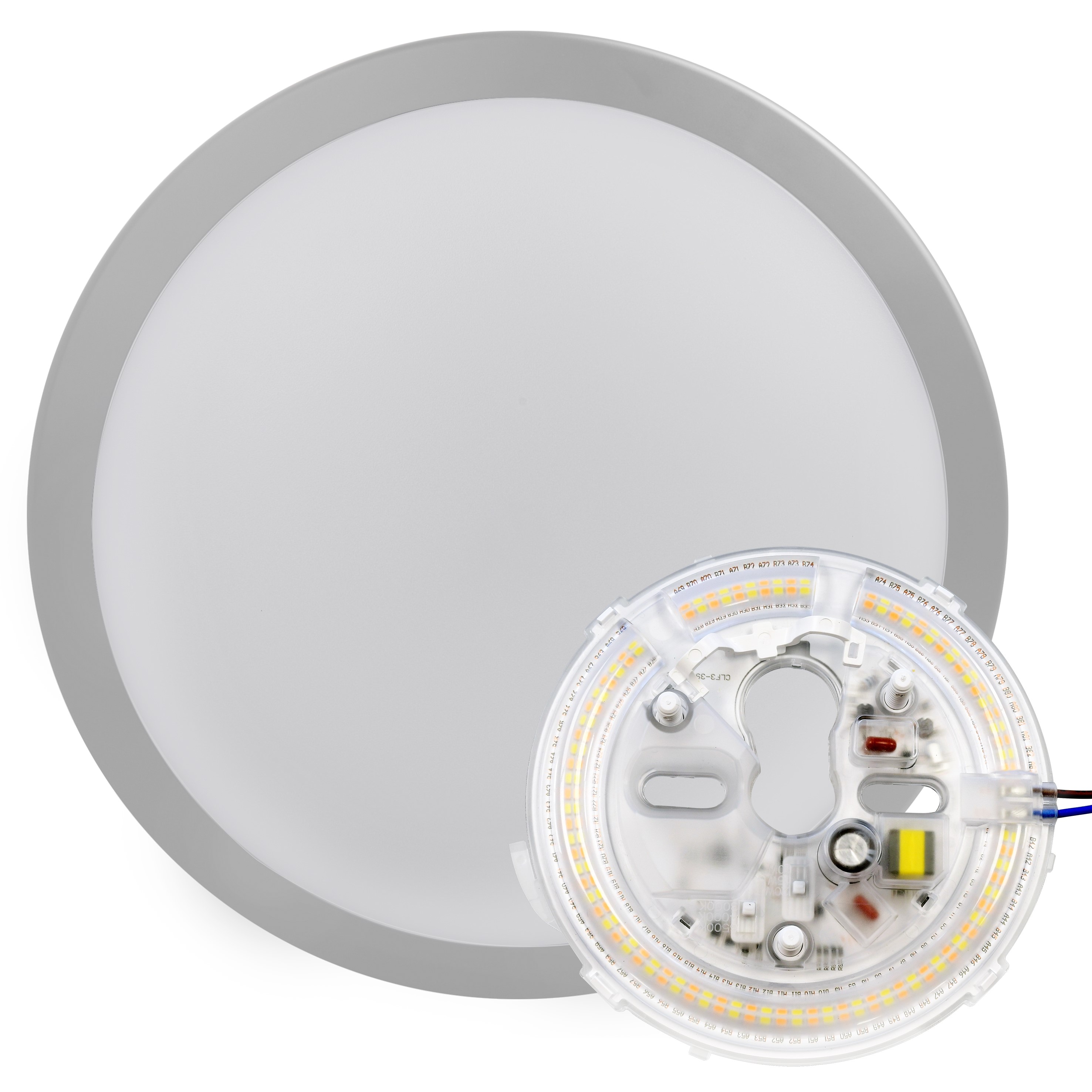 Multifunktionale, sehr robuste LED-Decken- und Wandleuchte mit 9fach einstellbarem und wechselbarem LED-Modul. Dreifach einstellbare Lichtfarbe 3000K/4000K/6500K. Leuchtenlichtstrom dreifach einstellbar (1200lm/1800lm/2400lm). Höchste Schutzart gegen Staub- und Strahlwasser. Höchste Schutzart gegen Vandalismus. 50.000 Std. Lebensdauer (L80/B10). 10 Jahre Nachkaufgarantie auf das LED-Modul. Die MEGAMAN XChange-Serie ist ein plattformübergreifendes Leuchtendesign, das die schnelle und werkzeuglose Reparatur durch Austausch von Lichtquelle und Vorschaltgerät ermöglicht. Aktuell gibt es XChange-Modelle in den MEGAMAN Performa-Leuchtenserien FONDA und RENZO. Silbergraues Gehäuse aus schlagfestem Kunststoff.- Hersteller-Artikelnummer (MPN)