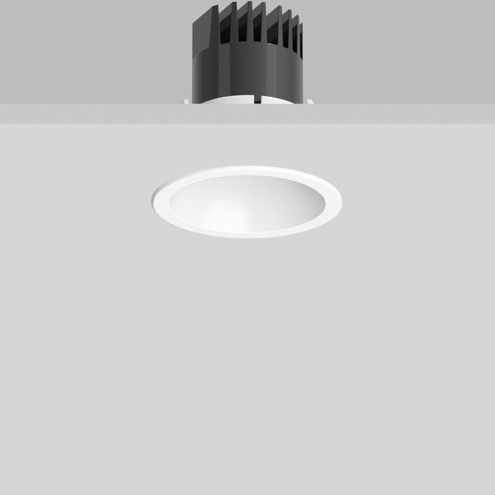 Dekoratives rundes Einbau-Downlight in zierlich kleinen Abmessungen. Blende Aluminium-Druckguss pulverbeschichtet. Kühlkörper Aluminium-Druckguss. Reflektor Aluminium hochglanzeloxiert. Mit Schutzscheibe. Lichtverteilung breitstrahlend. Ausstrahlwinkel 52°. MultiLumen: Leuchtenlichtstrom ist in 2 Stufen einstellbar. Werkseitig auf höchsten Leuchtenlichtstrom voreingestellt. Geeignet für Deckeneinbau. Deckenbefestigung mit Federsystem. Inklusive Betriebsgerät extern über Steckverbindung, Verbindungsleitung 250 mm. Für Durchgangsverdrahtung geeignet. Opale Kunststoffscheibe (PMMA) für einen gleichmäßig homogenen Lichtaustritt als Zubehör erhältlich.