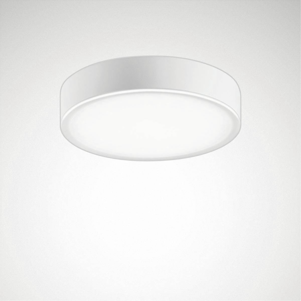 Rundes LED-Anbau-Downlight, Aufbauhöhe 60 mm. Geeignet zur Anwendung in HACCP, IFS und/oder BRC Global Standard Food zertifizierten Unternehmen. Für die Wand- und Deckenmontage. Abdeckscheibe aus transluzentem PMMA. Mit lambertscher Lichtstärkeverteilung. Ausstrahlungswinkel 104°. Harmonische Lichtwirkung durch gleichmäßig ausgeleuchteten Lichtaustritt. Leuchtenlichtstrom und Lichtfarbe fest eingestellt. Bemessungslichtstrom 3000 lm, Bemessungsleistung 23 W, maximale Leuchten-Lichtausbeute 130 lm/W. Lichtfarbe warmweiß, ähnlichste Farbtemperatur (CCT) 3000 K, allgemeiner Farbwiedergabeindex (CRI) Ra > 80. Farborttoleranz (initial MacAdam) = 3 SDCM. Mittlere Bemessungslebensdauer L80 (tq 25 °C) = 70.000 h. Die Lichtquelle ist entsprechend der Ökodesign-Anforderungen (VO (EU) 2019/2020) austauschbar. Flimmern: Pst LM = 1,0 bei Volllast. Stroboskop-Effekt: SVM = 0,4 bei Volllast. Leuchtenkörper aus Aluminiumdruckguss. Oberfläche weiß beschichtet (ähnlich RAL 9016). Außenmaße Deckenring Ø 316 mm, Leuchtenhöhe 60 mm. Schutzklasse (EN 61140): I, Schutzart (DIN EN 60529): IP40, Stoßfestigkeitsgrad nach IEC 62262: IK06, Prüftemperatur Glühdrahttest gemäß IEC 60695-2-11: 650 °C. Zulässige Umgebungstemperatur (ta): -20 °C bis 25 °C. Gewicht: 2,4 kg. Mit Anschlussklemme bis 2,5 mm, Zugentlastung und Netzweiterleitung. Mit elektronischem Betriebsgerät, schaltbar. Das Betriebsgerät ist entsprechend der Ökodesign-Anforderungen (VO (EU) 2019/2020) austauschbar. Das Produkt erfüllt die grundlegenden Anforderungen der anwendbaren EU-Richtlinien und des Produktsicherheitsgesetzes und trägt die CE-Kennzeichnung. Zusätzlich ist die Leuchte durch eine unabhängige Prüfstelle ENEC-zertifiziert. Leuchte 10 Jahre, Ersatzteile (LED-Modul, Betriebsgerät, optisches System) 15 Jahre nach Rechnungsdatum unter Vorbehalt vertretbarer Änderungen, die dem Fortschritt dienen, verfügbar.- Hersteller-Artikelnummer (MPN)