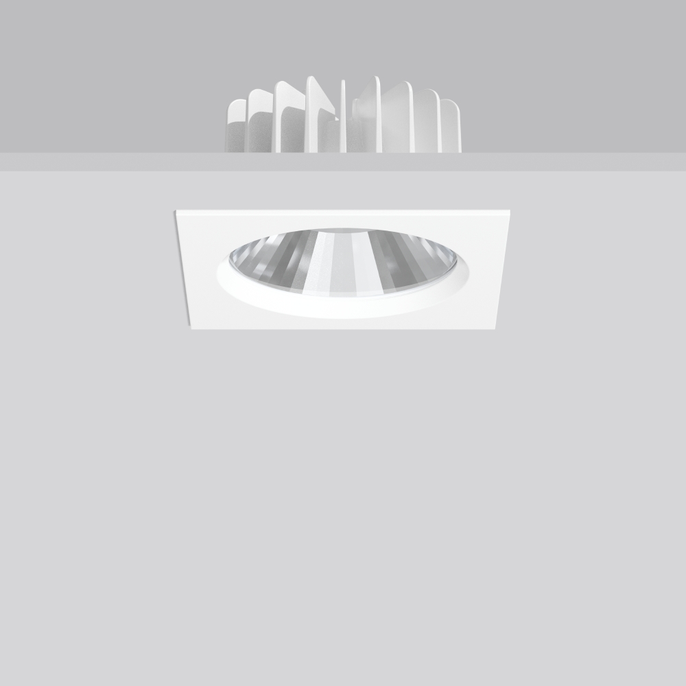 LED-Einbau-Downlight für höchste Ansprüche an Technik und Design. Gehäuse Aluminium-Druckguss als Kühlkörper ausgelegt. Quadratische Abdeckplatte Aluminium-Druckguss pulverbeschichtet. Auch die quadratische Ausführung mit rundem Deckenausschnitt. Geschlossene Ausführung. Abdeckung Einscheiben-Sicherheitsglas (ESG) klar. Serienmäßig mit Gore Protective Vents Membranventil zur Kondenswasservermeidung. Leuchte hält die hohe Schutzart auch einbauraumseitig in der Zwischendecke ein (gilt nicht für Betriebsgerät, IP 20). Viersegment-Facettenreflektor Aluminium mattiert mit hochglänzender Lichtmischkammer. MultiLumen: Einstellbarkeit des Leuchtenlichstroms in verschiedenen Stufen. Beste Farbwiedergabe Ra>90. Werkzeugloser Einbau durch Federbefestigung. Inklusive angeschlossenem Betriebsgerät in separater Gerätebox. Mit Verbindungsleitung L 250 mm. Für Durchgangsverdrahtung mit separat erhältlichem Zubehör geeignet. Durchgangsverdrahtungsbox (5-polig) als Zubehör erhältlich. Ballwurfsicher nach DIN 18032-3. Zugelassen für den Einsatz in der Lebensmittel, und Getränkeindustrie.