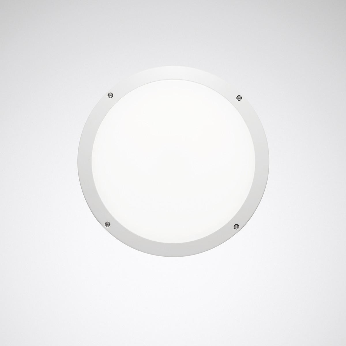 Runde, dekorative LED-Anbauleuchte für Wand- und Deckenmontage mit Schutzart IP65. Die Wandleuchte harmoniert durch optische und technische Konstruktionsmerkmale in ihrer Formensprache mit anderen Leuchten, die im Projekt Anwendung finden können. Ganzheitlich auch im Gebäudeinneren einsetzbar. Anbauleuchten für Decken- und Wandmontage. Mit rotationssymmetrisch breit strahlender Lichtstärkeverteilung. Leuchtenlichtstrom in 2 Stufen einstellbar, Lichtfarbe in 2 Stufen einstellbar. Das LED-System bildet mit der Leuchtenabdeckung eine fest verbundene Einheit und kann ausgetauscht werden. LED-System mit einstellbarem Leuchtenlichtstrom und einstellbarer Lichtfarbe über DIP-Schalter. Bemessungslichtstrom 1400 lm - 2100 lm, Bemessungsleistung 14 W - 20 W, maximale Leuchten-Lichtausbeute 107 lm/W. Wählbare Farbtemperatur: 3000 / 4000 K, allgemeiner Farbwiedergabeindex (CRI) Ra > 85. Farborttoleranz (initial MacAdam) = 3 SDCM. Die Lichtquelle ist entsprechend der Ökodesign-Anforderungen (VO (EU) 2019/2020) austauschbar. Leuchtenkörper aus Aluminium-Druckguss. Abdeckung aus hochschlagzähem PMMA, opal. Oberfläche weiß beschichtet (ähnlich RAL 9010). Leuchtendurchmesser 350 mm, Leuchtenhöhe 83 mm. Schutzklasse (EN 61140): I, Schutzart (DIN EN 60529): IP65, Schutzart Lampenraum: IP65. Stoßfestigkeitsgrad nach IEC 62262: IK10. Zulässige Umgebungstemperatur (ta): 25 °C bis . Gewicht: 3,1 kg. Mit 3-poliger Anschlussklemme bis 2,5 mm2 für Netzanschluss und Netzweiterleitung. Mit elektronischem Betriebsgerät, schaltbar. Das Betriebsgerät ist entsprechend der Ökodesign-Anforderungen (VO (EU) 2019/2020) austauschbar. Stoßspannungsfestigkeit Differential Mode / Common Mode: 1 kV / 2 kV. Das Produkt erfüllt die grundlegenden Anforderungen der anwendbaren EU-Richtlinien und des Produktsicherheitsgesetzes und trägt die CE-Kennzeichnung.