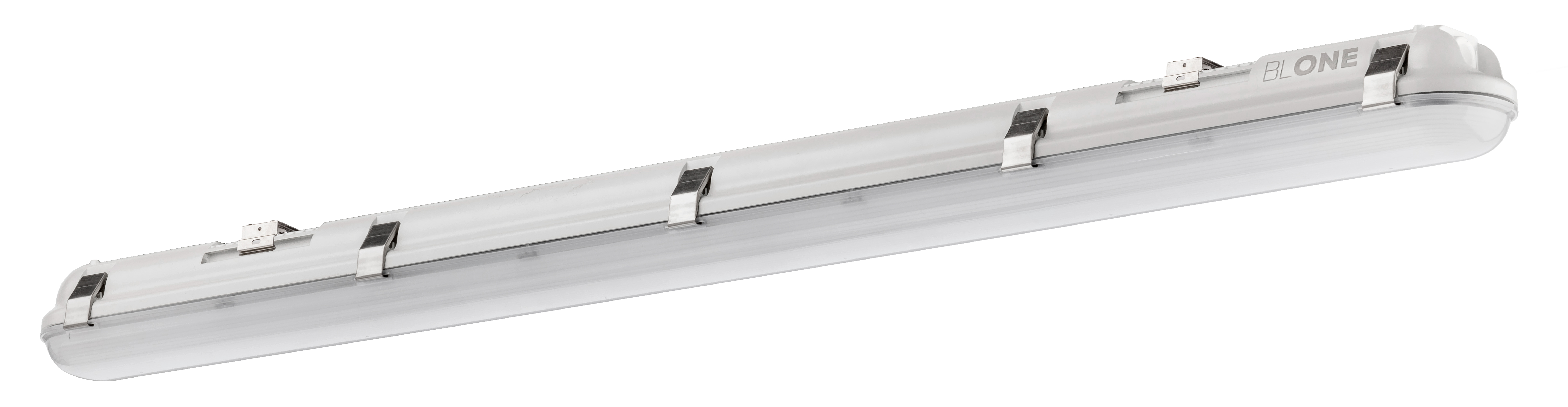 BL ONE 1500mm PCO 1x25/31/36/42W 115° 3800/4900/5800/6500lm, 4000K, SK I, ohne DV. Die Kunststoffteile dieser Leuchte bestehen zu 98% aus recyceltem Material. Die BL ONE der neuen Generation setzt Maßstäbe für Feuchtraumwannenleuchten: umweltfreundlich aus bis zu 98% recyceltem Material, robust, langlebig und vielseitig. Mit Funktionen wie DALI-Steuerung, integrierter Sensorik und Multilumen-Technologie passt sie sich automatisch den Umgebungsbedingungen an und spart Energie. Ideal für Industrie, Gewerbe und öffentliche Einrichtungen. Licht für Profis aus recycelten Materialien. Industrietauglich.. BEG förderfähig. . DALI, Sensor, 5x2,5mm² DV erhältlich. bis 180lm/W und bis zu 98% REMADE Score.