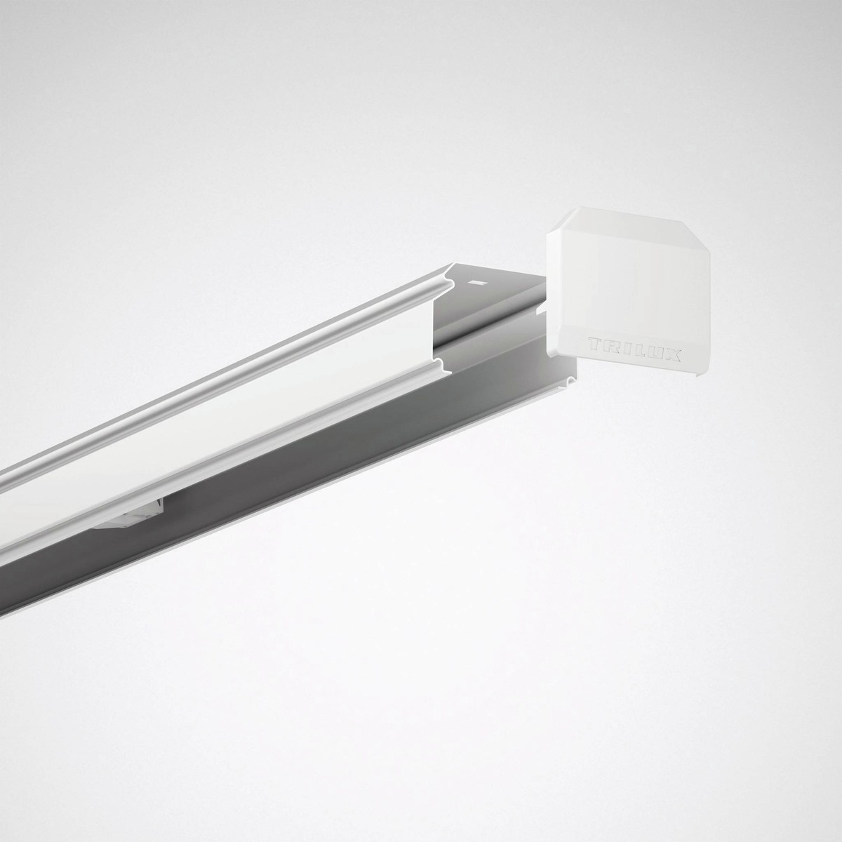 Kopfstück zum Abschluss einer E-Line 7651 Fix LED-Lichtbandanwendung IP20. Mit 2 stirnseitig nach innen ausgeführten, vorperforierten Ausbrechöffnungen zur Einspeisung. Aus Kunststoff, Farbe weiß.