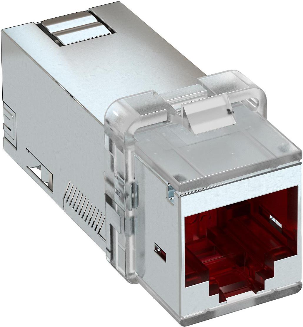 Anschlussmodul Kat. 6A (ISO) geschirmt, mit einem RJ45-Steckplatz. Inklusive einer EMV-Schirmhaube, einer Staubschutzkappe, einem Kabelbinder, einem Keystone Befestigungsrahmen und einer Montageanleitung. Geeignet für den Einbau in Datentechnikträger Typ DTG-2C und DTS-2C, Trägerplatte Typ MTM 2C und MTM 3C, Montageplatte Typ MPR2 2C, Montageträger Typ MTGE2 2C, MTGE2 15 2C und MTGE2 F 2C.