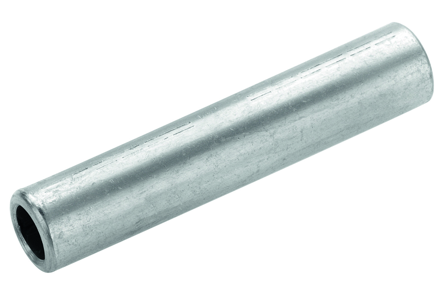 AL-Pressverbinder DIN 46267, Teil 2 aus E-Al, blank. Für rundgedrückte sm/se Sektorleiter. Ausführung: Querschnitt rm/sm: 95 mm²; Querschnitt se: 120 mm²; Kennziffer: 22; Innen-Ø: 13,2 mm; Länge: 105 mm; Gewicht kg/100: 7,6; Pressung 7 mm: 3-3; Pressung 5 mm: 6-6; VE/Stck.: 1
