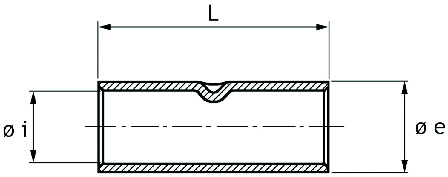 Stoßverbinder Cu, Normalausführung. Technische Daten - Werkstoff: Cu-ETP nach DIN EN 13600 - Oberfläche: galvanisch verzinnt, andere Oberflächen auf Anfrage - auch geeignet für feindrähtige Leiter nach IEC 228 - Ausgeglüht auf Kupferhärte F 20. Querschnitt: 1,5 mm²; Øi: 1,8; Øe: 3,3; L: 14,5; Gewicht per 100St. ~kg: 0,08; 7 mm: -; Pressung 5 mm: -; VE/Stck.: 100.- Hersteller-Artikelnummer (MPN)
