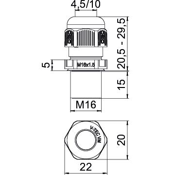 Kabelverschraubung mit metrischem Anschlussgewinde in Hutmutterbauart, für Kabelabzweigkästen, Gehäuse, Verteilerschränke im privaten und industriellen Bereich. Mit Zugentlastung und integrierter Dichtlippe, geprüft nach DIN EN 62444. Schutzklasse IP68. Einsetzbar von -20°C bis +65°C.- Hersteller-Artikelnummer (MPN)