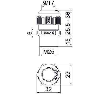 Kabelverschraubung mit metrischem Anschlussgewinde in Hutmutterbauart, für Kabelabzweigkästen, Gehäuse, Verteilerschränke im privaten und industriellen Bereich. Mit Zugentlastung und integrierter Dichtlippe, geprüft nach DIN EN 62444. Schutzklasse IP68. Einsetzbar von -20°C bis +65°C.- Hersteller-Artikelnummer (MPN)