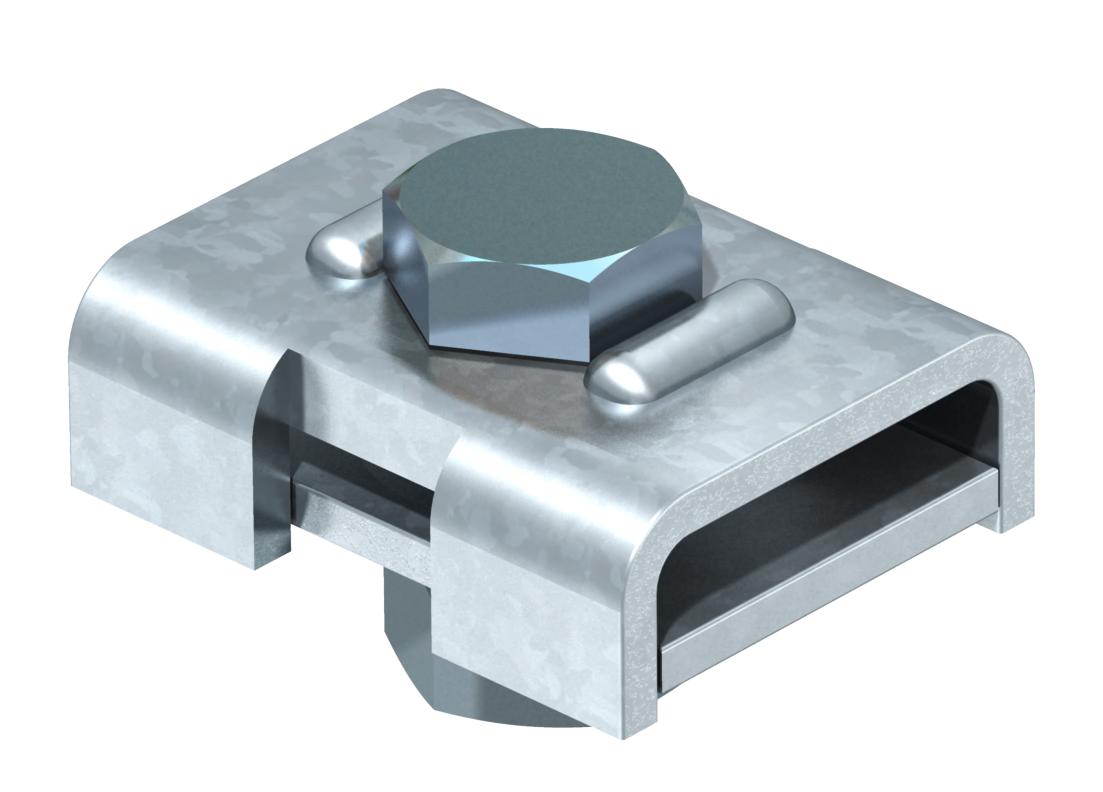 ; zum Anschluss von Rundleitern Rd 8-10 ; mit 1 Sechskantschraube M12 x 40 und 1 Sechskantmutter M12 und 1 Federring aus rostfreiem Stahl