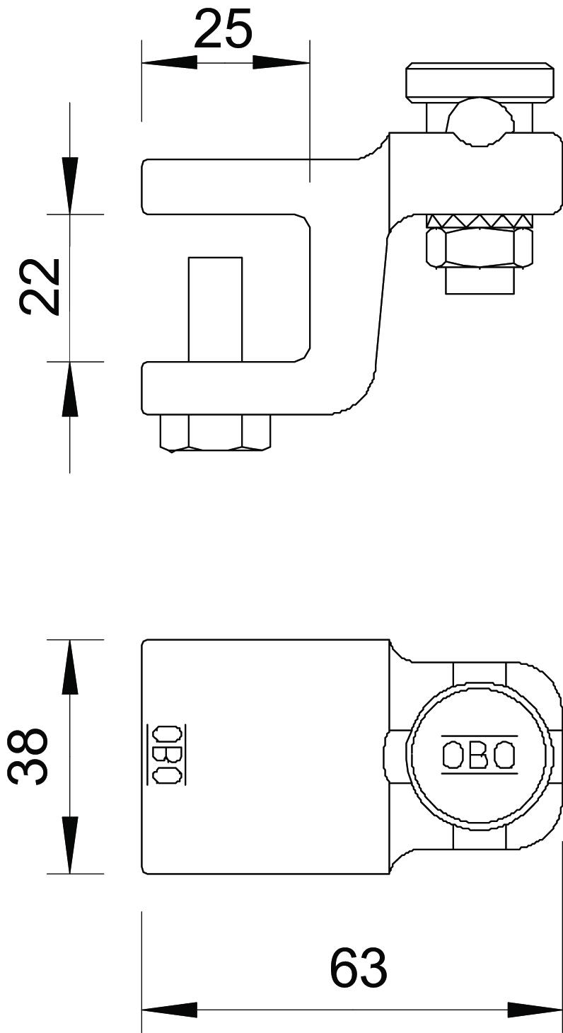 ; Flanschdicke bis 12 bzw. 10-20mm ; mit vormontierter Fix-Kontakt-Klemmschraube 5000 ; 2 Sechskantschrauben M8 x 20, Schrauben aus Stahl feuerverzinkt ; Klemmkörper aus Temperguss, feuerverzinkt ; Montage des Rundleiters senkrecht oder quer zur Konstruktion möglich ; entspricht den Anforderungen nach VDE 0185-305 (IEC 62305)