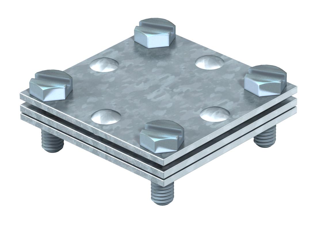 ; entspricht den Anforderungen nach VDE 0185-305-3 (IEC/ EN 62305-3) ; Passung: max. FL 30 x FL 30 ; mit Zwischenplatte ; montiert mit 4 Sechskantschrauben M6 x 20 (F)