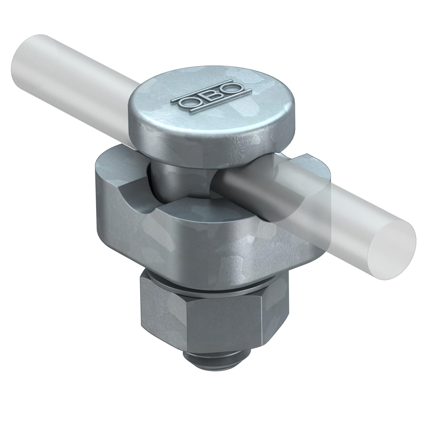 ; Mit Fix-Kontakt-Klemmschraube, Mutter und Fächerscheibe ; Mit Bohrung 10,2 mm ; Mit vormontiertem Druckstück aus Zinkdruckguss ; Entspricht den Anforderungen nach VDE 0185-305 (IEC 62305)