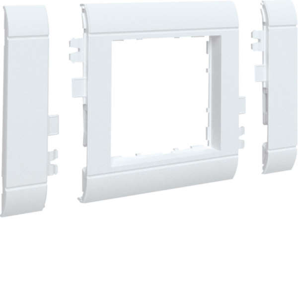 Rahmenblende 50 modular OT 80 halogenfrei verkehrsweiß.Rahmenblende für Brüstungskanal, modular anreihbar im Kombinationsabstand von 71 mm, Schnittkaschierend zum Kanaloberteil. Zur Aufnahme von Zentralscheiben, Abdeckungen, Wippen oder Adapterrahmen von Installationsschalterprogrammen mit Maß 50 x 50 mm. Angepasst an die Außenkontur des Brüstungskanals zur Reduzierung von Schmutzablagerungen und zur vereinfachten Reinigung. Zur Verwendung mit anreihbaren Gerätedosen für Brüstungskanäle, mit reduzierter Einbautiefe zum bündigen Abschluß mit der Verschlußkontur des Brüstungskanals. Über optionales Zwischenstück kombinierbar mit Steckdosenblende für Brüstungskanal.