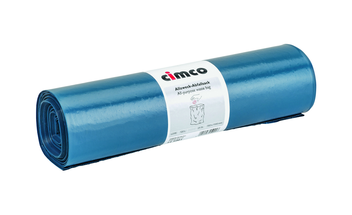 Allzweck-Abfallsack, Inhalt ca. 120l, aus recyclingfähiger Polyäthylen-Regenerat-Folie (LDPE), problemlose Verbrennung auf Deponien, da grundwasserneutrales Verhalten und keine Freisetzung von schädlichen Gasen oder Stoffen, besonders stabil und reißfest, wasserdicht, je 25 Sack auf 1 Rolle, Farbe blau, 700x1100 mm